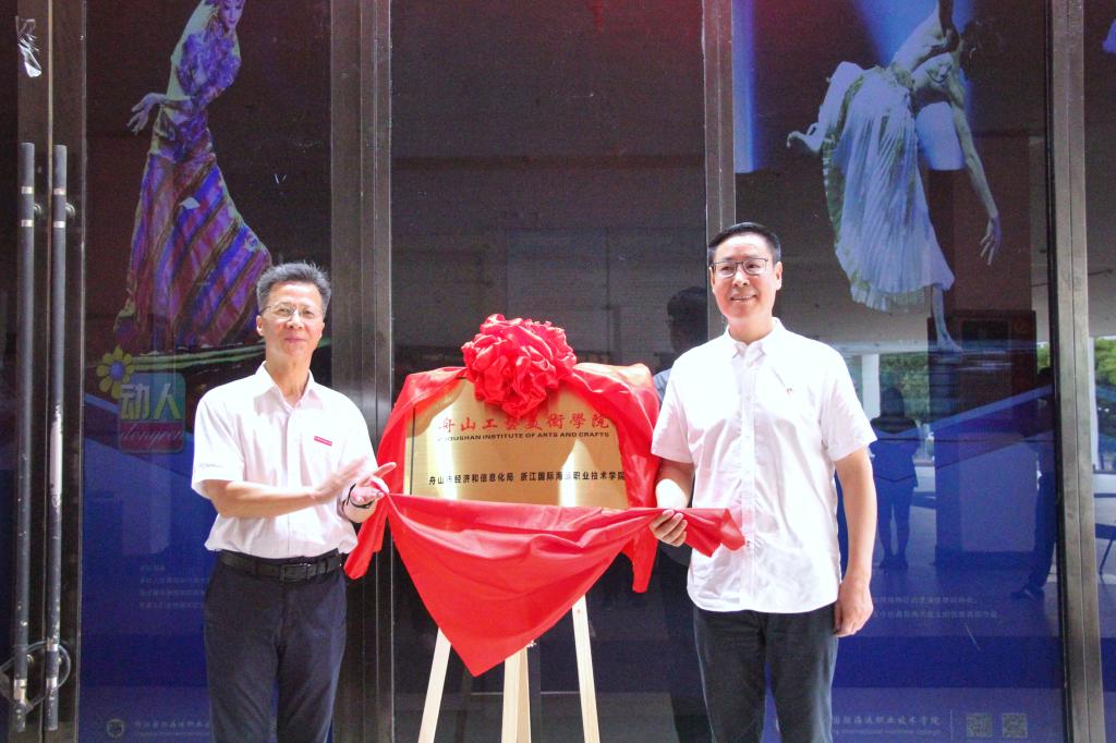 6月24日,舟山工艺美术学院在学校图书馆一楼揭牌成立。校党委副书记、校长吴中平,浙江省工艺美术行业协会副会长裘国樑,舟山经济和信息化局消费品工业处处长陈峰,舟山工艺美术协会会长翁海星,校党委委员、纪委书记江爱芬,校党委委员、宣传(统战)部部长陈永芳,海洋旅游学院院长俞海平,学校各职能部门负责人和海洋旅游学院全体教师以及部分在校生参加仪式。