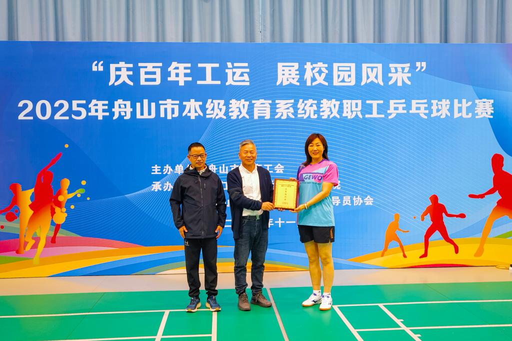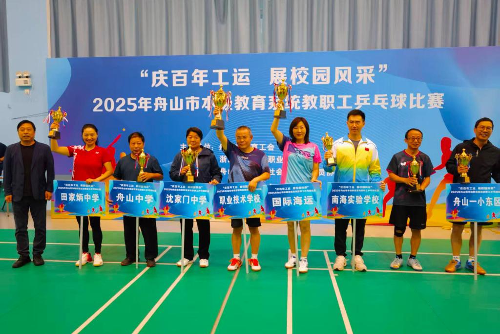 11月7日至9日,由舟山市教育工会主办的“庆百年工运,展校园风采”2025 年市本级教职工乒乓球竞赛在我校体育馆精彩落幕。我校教职工代表队凭借精湛球技与顽强斗志,一路过关斩将,最终斩获混合团体亚军与优秀组织奖,在全市教育系统面前展现了海运教职工的竞技风采与团结精神。