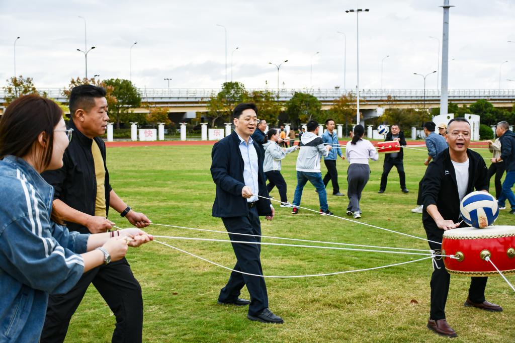 当日,本校区8个分工会的运动员围绕5个项目展开激烈角逐。赛事设置兼顾竞技性与趣味性:铅球、立定跳远两项个人赛考验教职工的个人体能与技巧,毛毛虫竞速、同心鼓、拔河三项团体赛则聚焦团队协作与默契配合。校党委书记蔡志军等校领导亲临现场,不仅为运动员加油助威,更亲自下场参赛,与教职工们同场竞技;赛场周边,师生们的加油喝彩声此起彼伏,热烈氛围感染着每一位参与者,让秋日的校园充满活力。