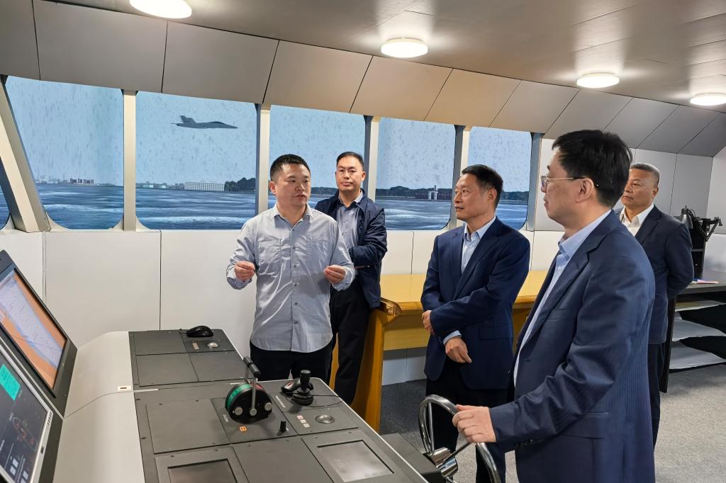 在江苏海事职业技术学院,学校党委书记万健、校长温华兵、副校长马洪涛等领导进行了接待。调研组参观了学校的航海数字仿真中心、轮机智能化机舱、新中国航海职业教育史馆、郑和航海文化博物馆等,并就国家“双高计划”院校的建设经验与航海类专业“五金”打造模式等内容展开座谈研讨。