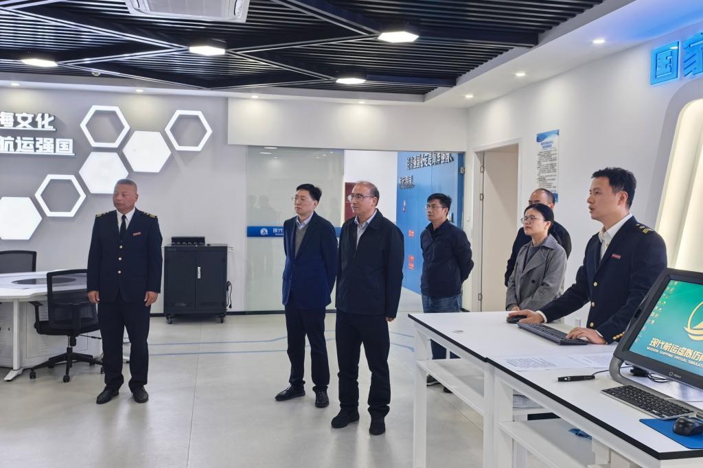 张立军副厅长参观了我校航海操纵模拟器、国家级现代航运虚拟仿真实训中心、数字孪生(PLC)实训室和航海艇筏训练基地等,对我校在改善提升学生实训条件上的努力表示认可。