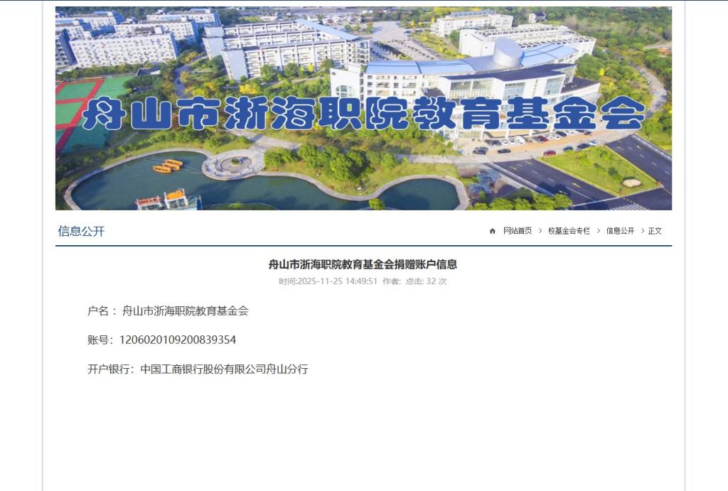 此次匿名捐赠的暖心之举,为职业教育发展凝聚了正能量。基金会呼吁,希望更多校友、企业及社会爱心人士能关注浙海职院的发展,携手汇聚爱心暖流,为培育高素质职业人才、推动高等职业教育事业高质量发展注入源源不断的动力。