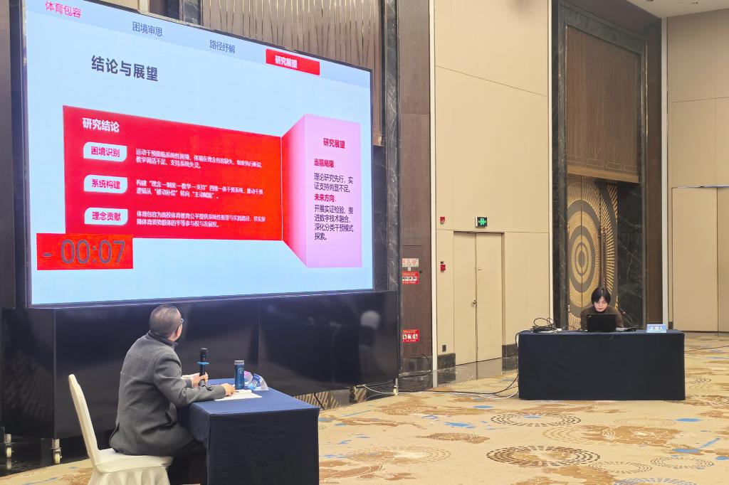 大会交流环节,夏燕波、马琼、刘大炜依次登台,围绕各自论文核心观点、研究方法及创新成果进行汇报分享。他们的研究内容紧密结合高校体育实践与地方发展需求,兼具理论深度与应用价值,得到了与会专家的广泛关注与高度好评,充分展现了我校体育科研的扎实功底与创新视野。
