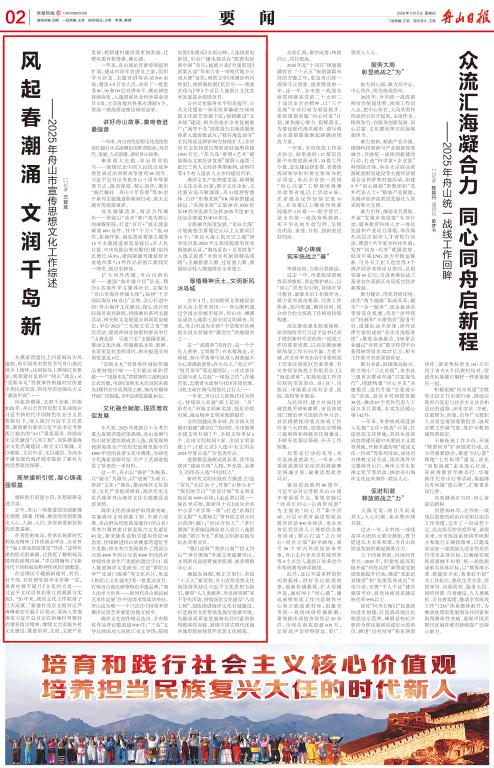 3月5日,《舟山日报》刊发《风起春潮涌 文润千岛新——2025年舟山市宣传思想文化工作综述》,系统盘点2025年舟山市宣传思想文化工作亮点,我校主持、参与的多项成果与工作成功入选,充分彰显学校在地方文化建设中的重要作用。