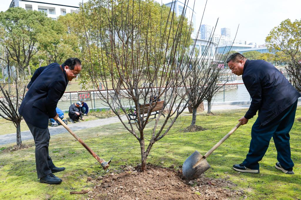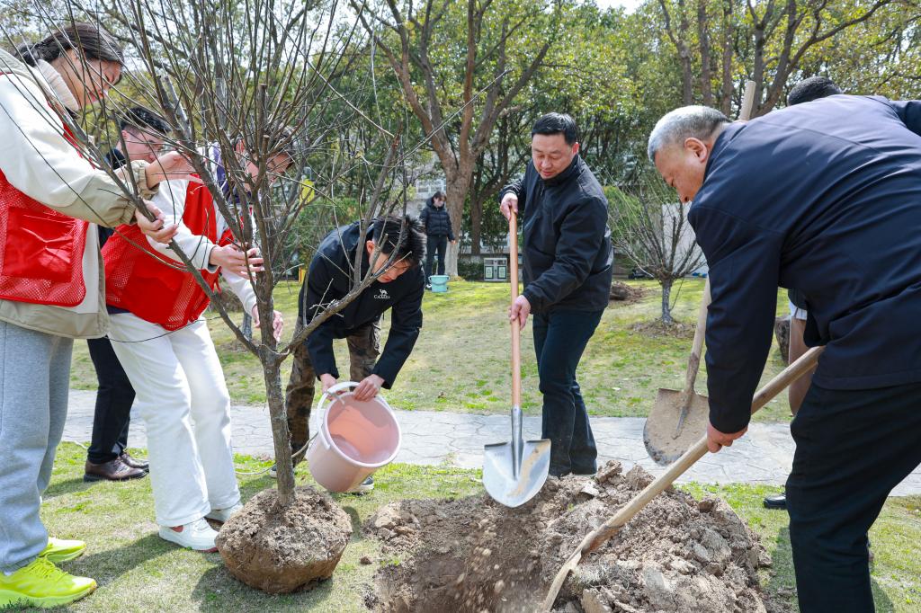 三月春风暖,植绿正当时。3月12日,正值第48个植树节,校工会、办公室、校团委、后勤产业处联合组织师生代表齐聚校园内湖畔,开展植树活动。蔡志军、吴中平、孔志光、曹志斌、夏志刚、方波、刘相等校领导与师生代表一同挥锹培土,以实干为校园添绿,以行动为发展蓄力。