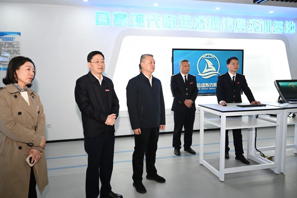 陈重一行来到国际海员培训楼、综合实训楼,参观国家级现代航运虚拟仿真实训中心、航海操纵模拟器、数字孪生PLC实训室等,了解学校以数字化技术推动职业教育高质量发展等情况。他对学校数字赋能职业教育表示肯定,勉励学校要牢牢把握“服务发展、促进就业”办学方向,不断做精做优、做特做强,大力推进职业教育内涵式发展,更好服务海洋特色现代化产业体系建设和学生全面成长成才,努力建设省内具有重要影响力的海洋特色鲜明的高水平职业院校。随后,陈重来到航海艇筏训练基地,观摩海员实操训练,了解技能人才培养和校企合作等情况。