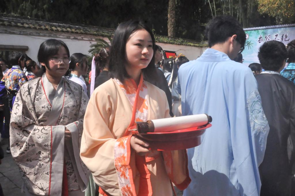 同归域安息着南明1.8万余名抗清殉难将士的英魂,是现代人缅怀历史、教育后代的一个重要场所。活动依据明制祭祀仪程开展,参与人员身着传统汉服,恭读祭文、进香、敬茶、诵词、题字……大家有序地进行着祭拜,满怀肃穆之情。