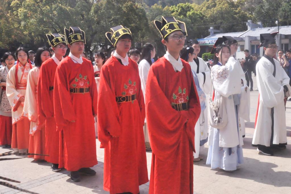 4月1日上午,海洋旅游学院汉文化社、爱心社与舟山市多个社会团体来到定海海山公园,参加由舟山市中华传统文化促进会、舟山市定海区收藏学会主办的“衣冠不绝 华夏不灭”清明公祭同归大域活动。