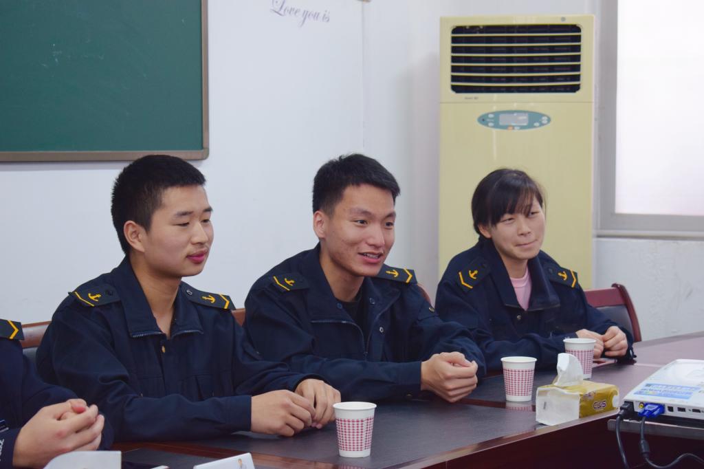 同学们表达了对学院准军事化管理的赞同,为身为航海人而自豪,同时反应了在学习专业上的一些疑惑和困难,老师们一一进行了解答。从寝室问题到以后就业方向,从小事聊到未来,会谈气氛轻松愉悦,短短的一小时,师生都打开了心扉。陈永芳在总结发言中期待能够再次与同学们进行生活和学业上交流,希望大家能够与其他同学多沟通多了解,同时也希望同学们利用微信平台进行问题反馈。