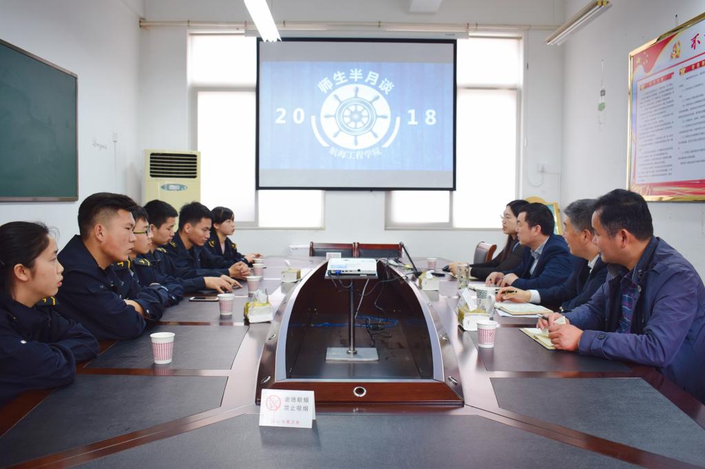 4月3日下午,航海工程学院首期“航海有约”师生半月谈成功举办。院长陈永芳、党总支书记韩开封主持座谈,副院长史方敏、党总支副书记陈艳霞与10余名2017级同学围绕学院生活和专业学习等相关话题展开讨论。