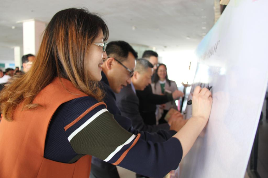 参加开幕式的师生们共同在“书香致远,阅享人生”的主题墙上签名,积极响应学校全民阅读,共建书香校园的倡议。