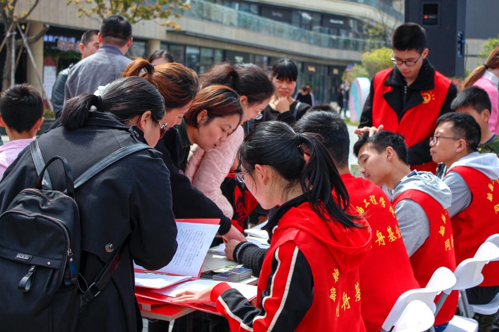 4月15日下午,舟山市普陀区第十一届全民读书节在东港杉杉普陀天地广场开幕,“同舟基金”作为普陀团区委特邀志愿者团队,来到现场助力开幕式活动。