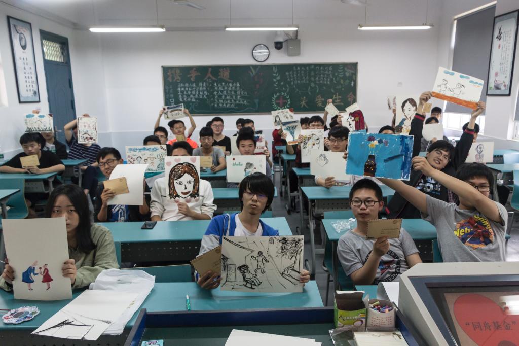 40余名同学来到教室,通过绘画的形式画出了眼中的自己,部分学生通过绘画自己与父母亲在一起的画面来表达自己对家人的爱。2017级机电工程1班林易速获得了本次自画像比赛一等奖。