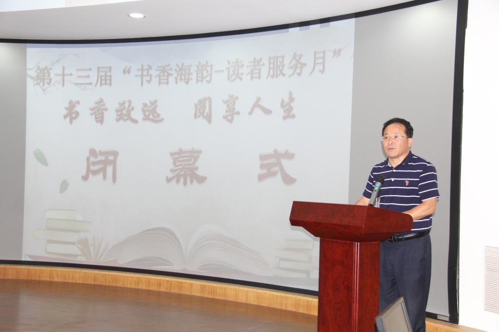 孔志光副校长为“书香海韵-读者服务月”致闭幕辞,他感谢师生们的积极参与,向获奖读者表示祝贺。本届“书香海韵-读者服务月“历时2个月,开展活动12项,师生参与达到近800人次。通过学校官微、“海韵新青年”公众号、学校官网、海报等线上线下的广泛宣传,以“传统与创新相结合”为思路,“书野仙踪”索书比赛、“撷英采华-校园书肆”、“撕名牌大战”歌德阅读机推介、“发现最美的你”摄影比赛等经典品牌活动有了新的内容和形式,效果显著提升,而创新活动如“21天阅读计划”打造读书好习惯、“若说有奇缘”好书分享等,更是在校园内传递了读书乐趣、点燃了阅读热情。他希望图书馆再接再厉,进一步拓宽思路、延伸服务、扩大影响、科学引导,吸引更多的同学走进图书馆、利用图书馆,让书香溢满校园,让阅读成为生命的一部分。