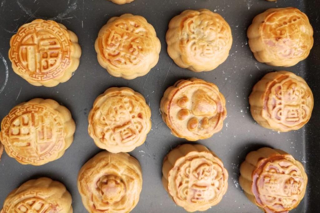 参与者大多是第一次进行烘焙活动,在不断学习和尝试后,克服了饼腰塌陷、饼皮起泡、饼面图案不清等问题,做出了4盘花色各异的月饼胚。再经半小时的烘烤,香喷喷的月饼便新鲜出炉了。