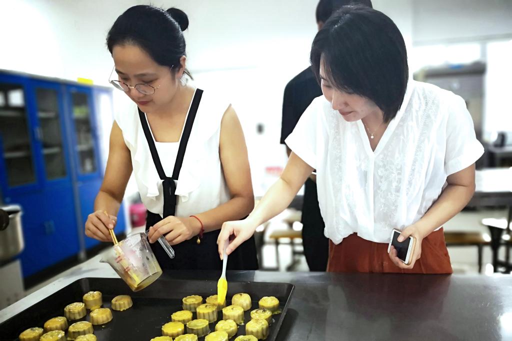 9月21日下午,校团委、校工会组织青年教工和学生志愿者,亲手制作月饼,喜迎中秋佳节。