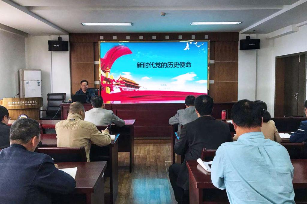 孔志光副校长以“新时代党的使命”为主题,结合十九大精神,分别从“走进共产党人的初心”、“四个伟大工程”、“中国共产党最有理由自信”、“从严治党 开创未来”四个方面,以大量的图片和实例,对“新时代党的使命”作了深入浅出、理论联系实际的讲解,希望全体党员“不忘初心、牢记使命”,充分发挥模范带头作用,努力成为新时代合格党员。