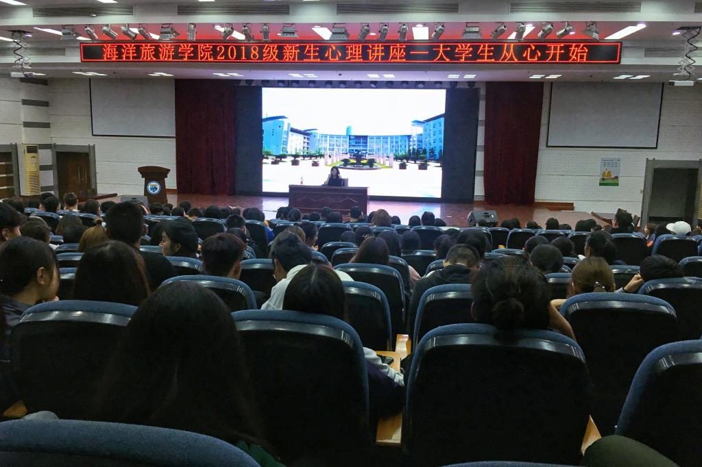 10月31日晚上,海洋旅游学院在图书馆四楼报告厅举办了“大学生从心开始”主题心理健康教育健康讲座,400多名2018级新生参加讲座。
