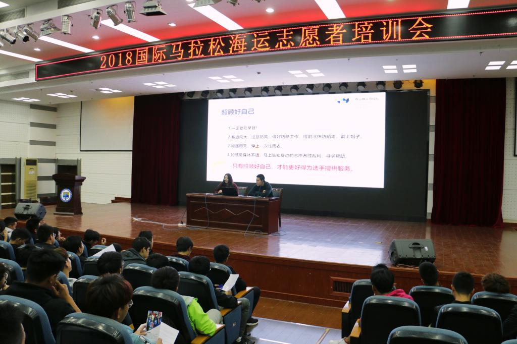 11月3日和11月5日,由普陀团区委、区文广局联合主办的2018年舟山国际马拉松学生志愿者培训会在我校董浩云图书馆顺利进行。本次马拉松比赛运营方舟山中迹文体发展有限公司代表和来自船舶工程学院、海洋旅游学院、国际教育学院共计509名志愿者分批参加了培训。