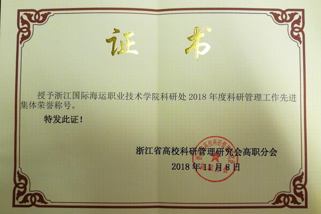 11月9日,在浙江旅游职业学院千岛湖校区召开的浙江省高校科研管理研究会高职分会年会上,我校科研处荣获“2018年度浙江省高校科研管理工作先进集体”荣誉称号。