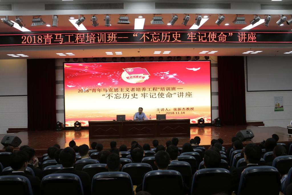 11月14日下午,学校党委委员、副校长张新杰教授为我校2018“青年马克思主义者培养工程”大学生骨干培训班的170余名学员授课。