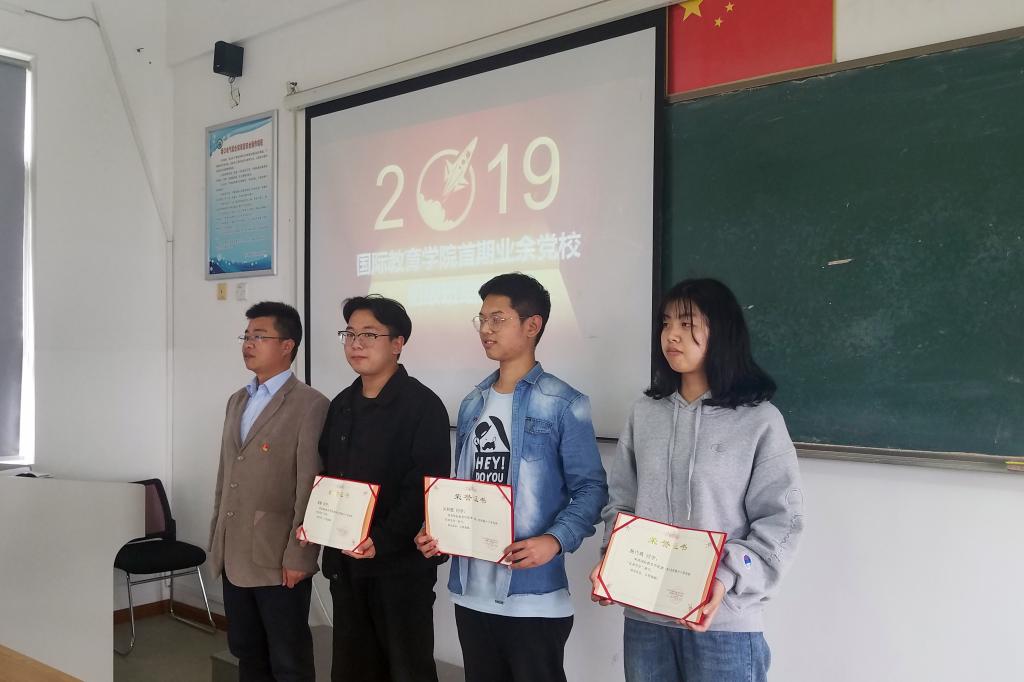 5月6日下午,国际教育学院首期业余党校基础班入党积极分子结业仪式在1号教学楼412教室举行,学院党支部书记黄承、副书记颜天明参加结业仪式。