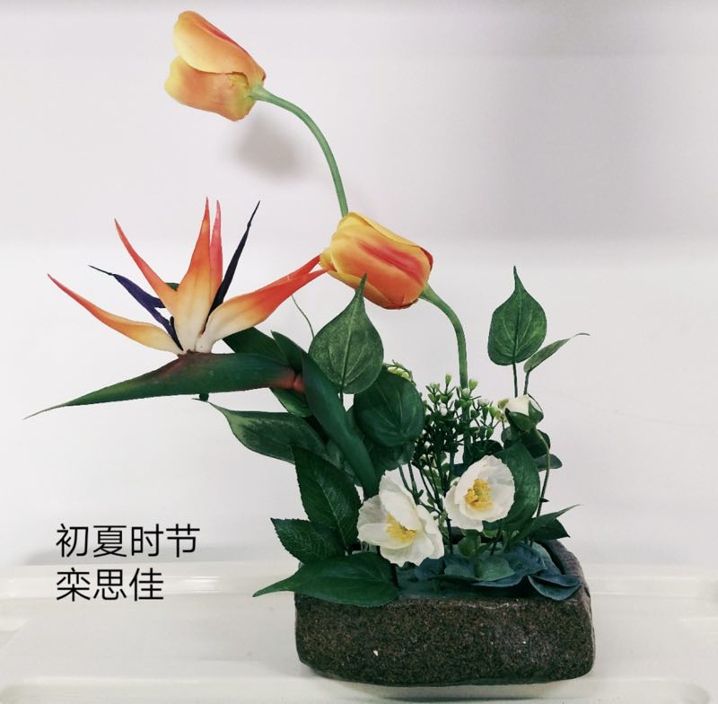 近年来,花艺制作越来越受大家的欢迎和喜爱。插花借用花木抒发人的意志、愿望之时, 以花枝展情韵, 表现花品花格, 令人在极尽赞叹之余, 心驰神往。(海洋旅游学院)