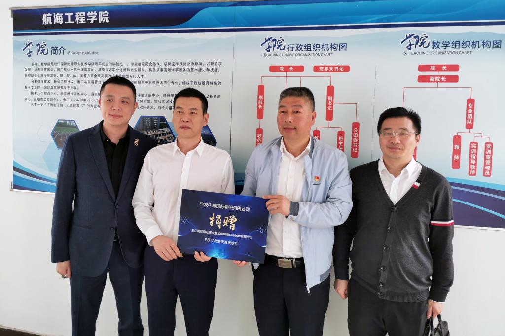 会上还举行了“宁波中威国际物流有限公司捐赠货代软件”仪式。航海工程学院党总支书记韩开封、宁波市物流协会副秘书长张伟君、国航专业实训团队负责人王芳杰老师等出席了本次洽谈和捐赠活动。(图文/郑凯雨)
