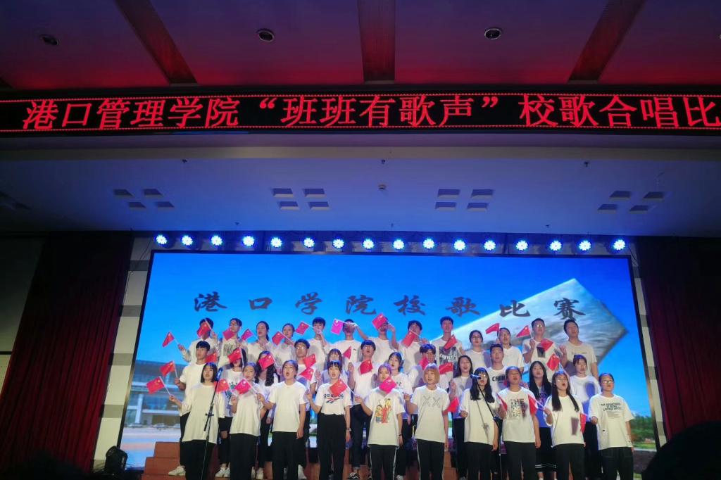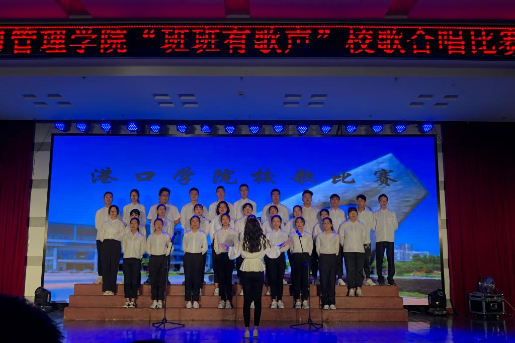 当天晚上,比赛在港口管理学院合唱队带来的校歌《大海,我的未来》和《我爱你,中国》中拉开帷幕。同学们饱满的精神状态、整齐漂亮的服装和构思新颖的队列设计,赢得了在场观众的阵阵掌声。随后,12个班级代表队根据抽签顺序依次上台演唱校歌。他们以高昂的热情、嘹亮的嗓音,唱出了对大海、对未来的热爱。经过激烈角逐,2018级物流管理2班获得本次比赛第一名。(图文/余娜娜)