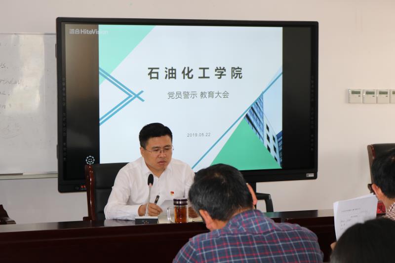 5月22日下午,石油化工学院党支部召开警示教育大会,全体党员、教职工和大学生入党积极分子28人参加会议。