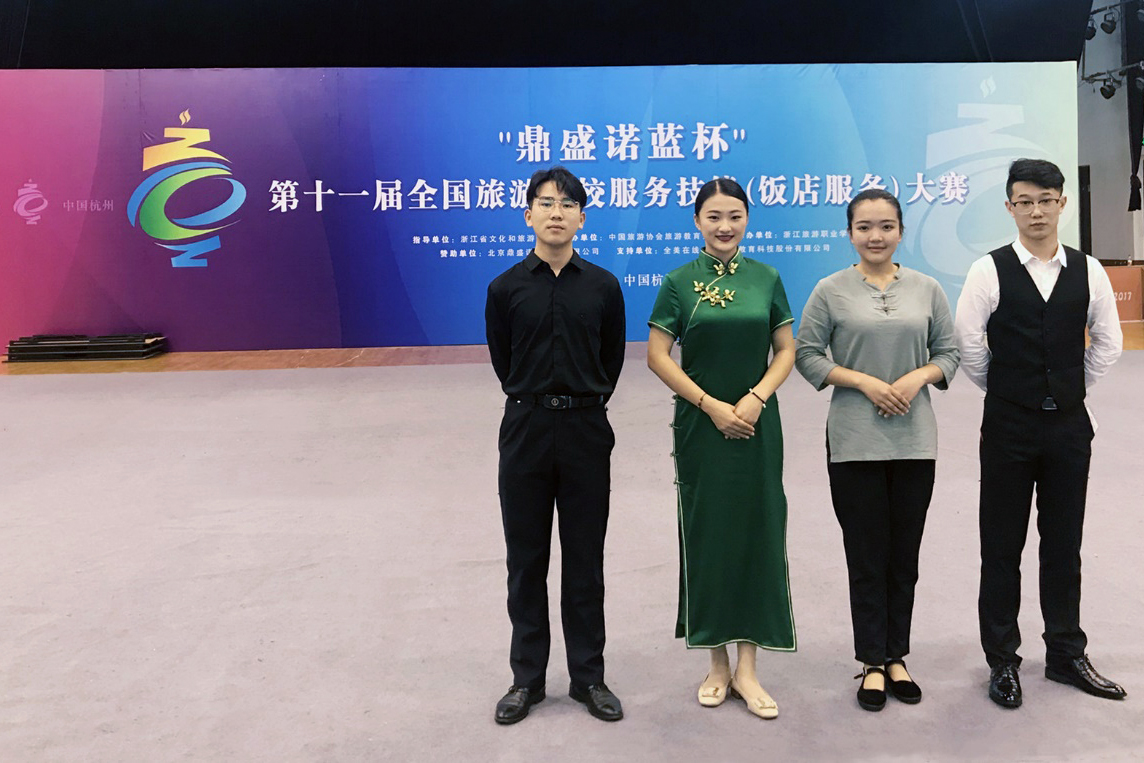 5月16日-19日,由中国旅游协会旅游教育分会主办、浙江旅游职业学院承办的“鼎盛诺兰杯”第十一届全国旅游院校服务技能(饭店服务)大赛圆满举行。全国各省市共有398所院校、954名选手参加本次大赛。我校由海洋旅游学院张伊萌、钟佳辉、叶依婷、夏珂琦四名同学组成代表队参加了高职高专院校组的中餐宴会摆台、西餐宴会摆台、客房服务、鸡尾酒调制四项赛事,斩获两项个人二等奖、两项个人三等奖。