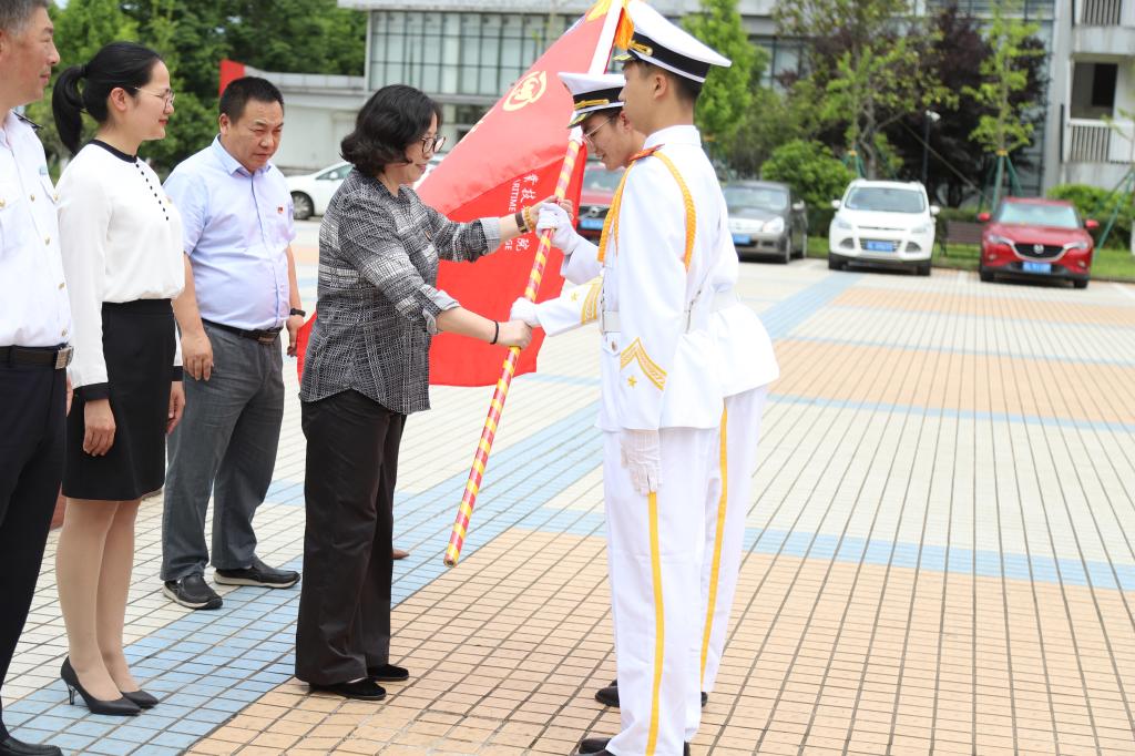 5月29日,我校在董浩云广场国旗下隆重举行了国旗护卫队授旗仪式。校党委委员、宣传(统战)部部长方晓红,学工部部长王智明,校团委书记徐盈,航海工程学院党总支书记韩开封、学工部副部长於国元、校人武部副部长周静出席授旗仪式。