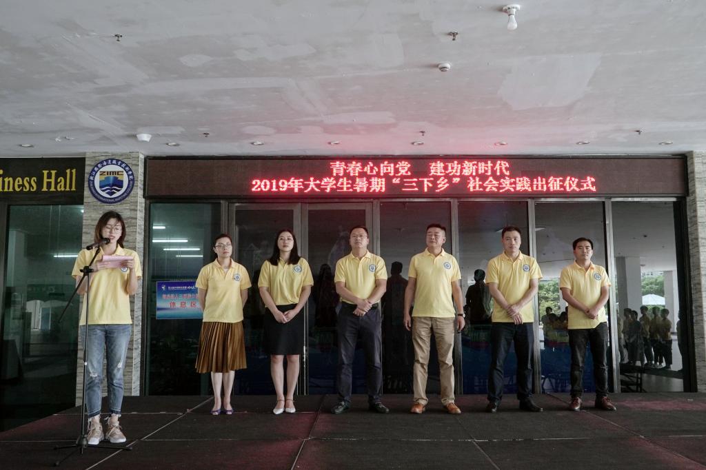 各二级学院党总支(支部)和校院二级团委负责人、社会实践团队指导老师代表、学生代表参加了本次出征仪式。校团委副书记邬加白主持仪式。仪式上,学生代表做表态发言,他呼吁同学们在社会实践中时刻牢记我校“德行四海”的校训,勇于砥砺奋斗,展现新时代大学生求真务实、奋发进取的精神面貌。校团委副书记廉婧向即将奔赴各地开展暑期社会实践的师生们致以良好祝愿,并对同学们提出了希望和要求。