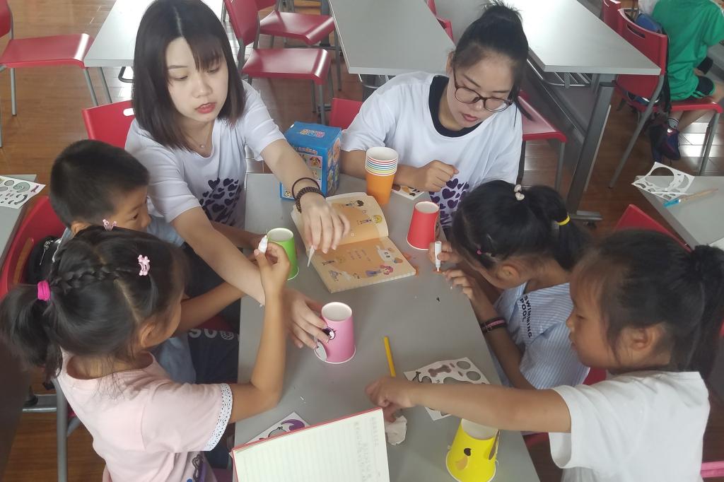 “我们已经约定好了,今年暑假老地方再会。”来自2017级应用英语1班的胡健超同学已经是第二年来到金塘柳行社区了,“还是熟悉的地方,还是熟悉的面孔,去年是学长带我来,今年是我带学弟学妹来,我要把活动继续传承下去。”今年国际教育学院又将活动扩展到了临城金鸡山社区,随着志愿活动的开展,越来越多社区家长把孩子们送过来,家住桃湾五区的郑女士也带着孩子前来参加,“在这里志愿者们既能帮助辅导功课,还会教孩子们制作手工作品、下棋等,寓教于乐,真的是太好了!”