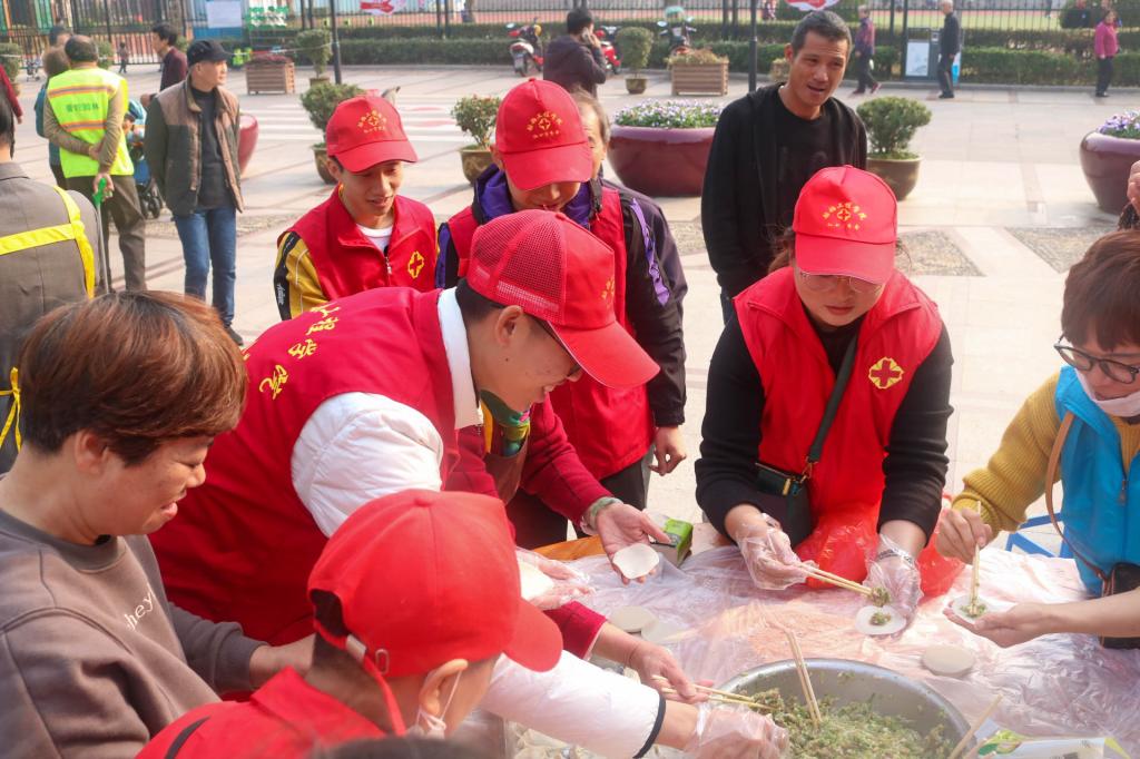 在活动现场,志愿者们开展了转陀螺、踢毽子等冬令小游戏,并为参与的市民们准备了暖心的纪念品。现场更是搭灶起锅,志愿者和市民们一起将暖心汤圆包起来,爱心饺子煮起来,并将一碗碗热乎乎的汤圆和饺子送给周边的环卫工人、附近的空巢老人。