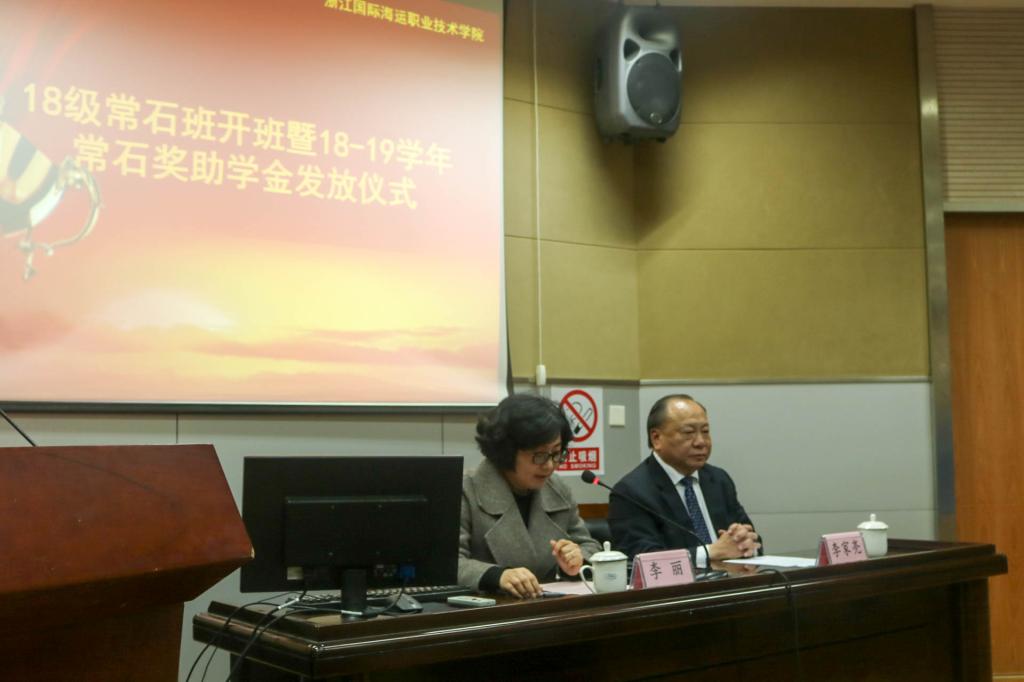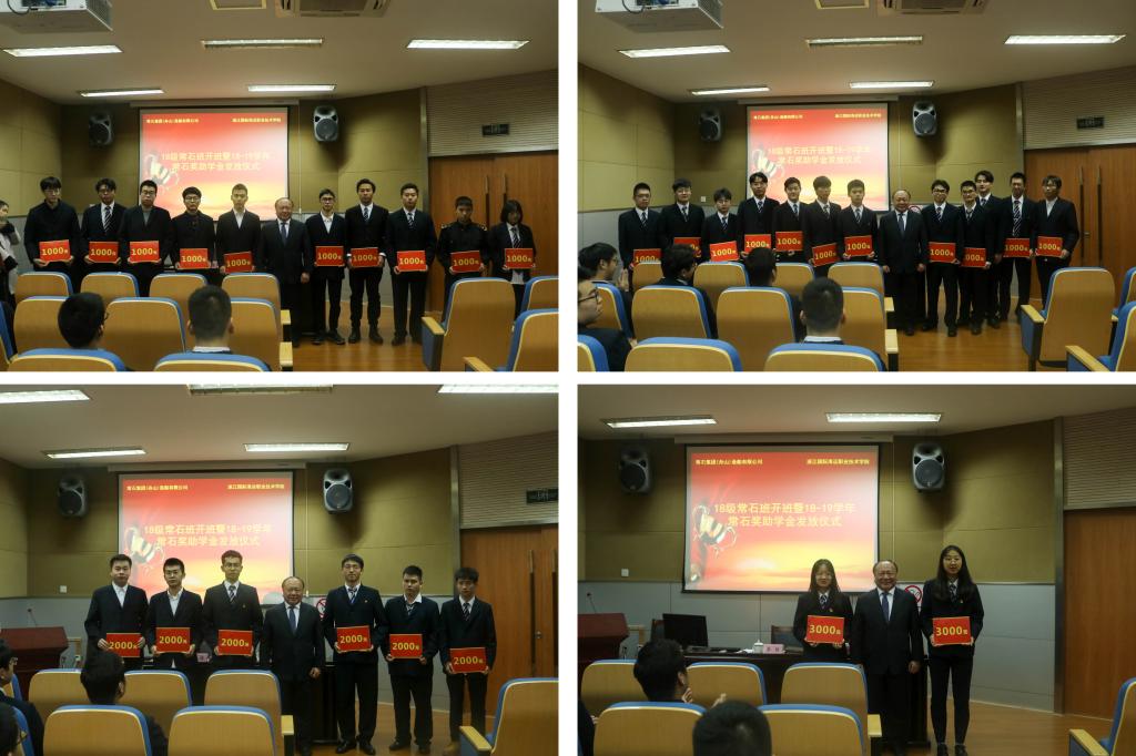 随后,李海波宣布2018-2019学年常石奖助学金获得者名单,并由李家亮先生亲自颁发奖助学金。2018级常石班学生李哲宁作为代表发言,他向常石集团对同学们的支持和帮助表示感谢。