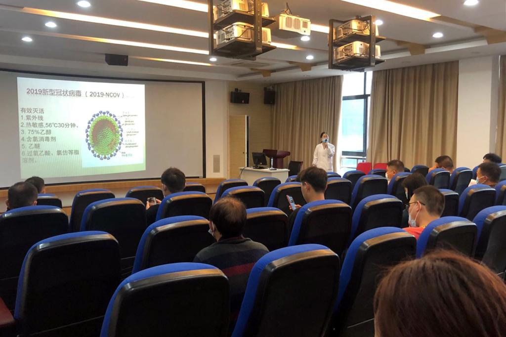 随后,公共卫生科科长金曙敏从新型冠状病毒的特性、商贸区的消毒要求和含氯消毒剂的安全使用三个方面介绍了如何做好疫期内商贸区的消毒工作,着重介绍了含氯消毒剂的配置方法、使用时效、存放要求和消毒人员防护及应急处理,确保各商户在日常消毒中能有效达到消杀效果。