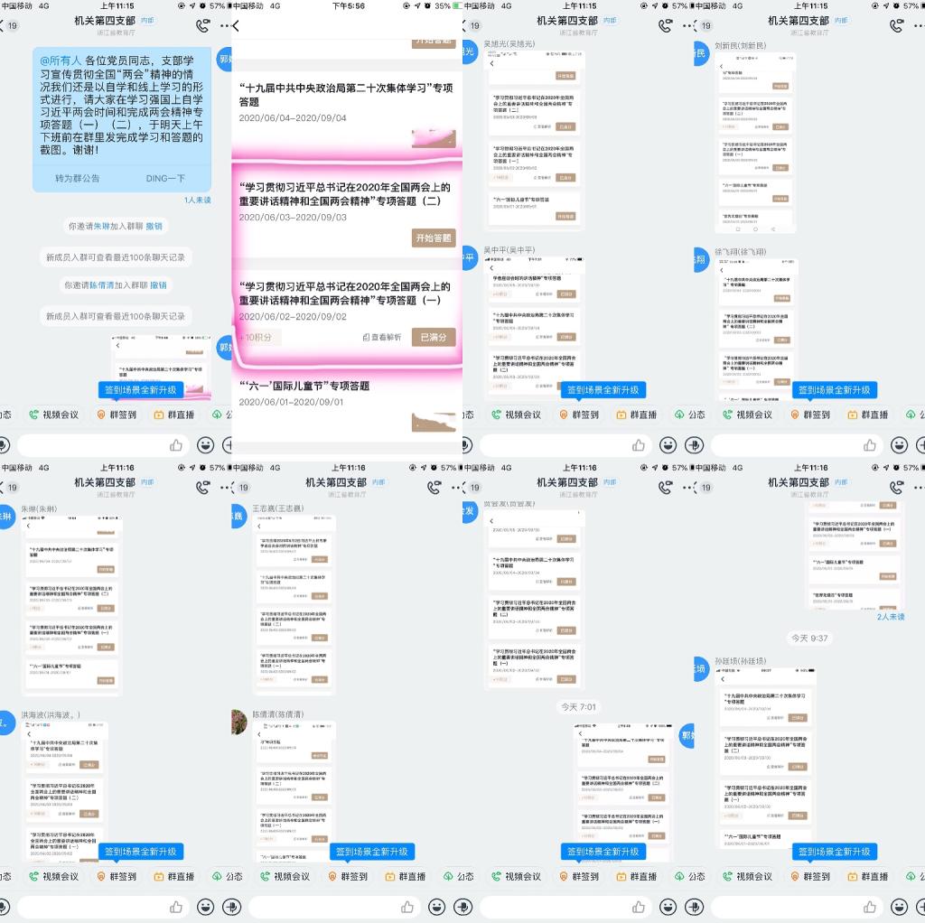 6月中下旬,机关党总支下属5个党支部结合“三会一课”,依托学习强国APP和微信群、钉钉群等,通过在线学习、线下集中学习、专项答题、观看《10分钟带你了解全国两会》《2020年政府工作报告解读》《凝聚起决战决胜的人民伟力——2020年全国两会巡礼》视频等形式,分别开展了全国“两会”精神的学习宣传贯彻活动,并将“两会”精神学习同贯彻落实习近平新时代中国特色社会主义思想结合起来,同推进学校“两个高质量”建设结合起来,在广大党员教职工中掀起了学习全国“两会”精神的热潮。(图文/机关党总支)