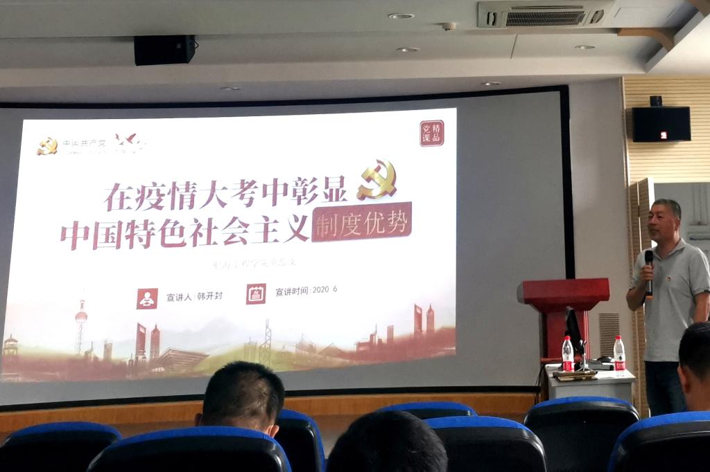 全体教师党员首先学习了市委组织部《关于进一步发挥全市居民住宅小区兼合式党组织作用引领全市基层治理的通知》等上级文件,活动还安排了“在疫情大考中彰显中国特色社会主义制度优势”等党课。