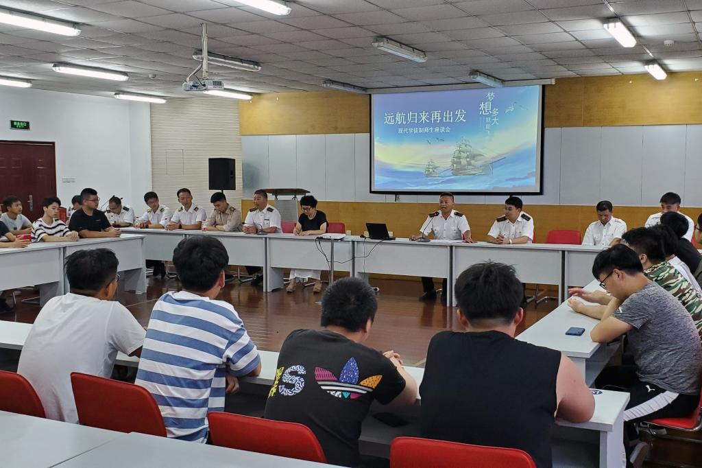 8月31日,学校在国际海员培训楼报告厅举行了现代学徒制学生座谈会,李丽副校长、航海工程学院海上实习学生工作专班成员、现代学徒制学生以及来自东方海外国际货柜航运有限公司、CHINA NAVIGATION公司的3名优秀学长参加座谈会。