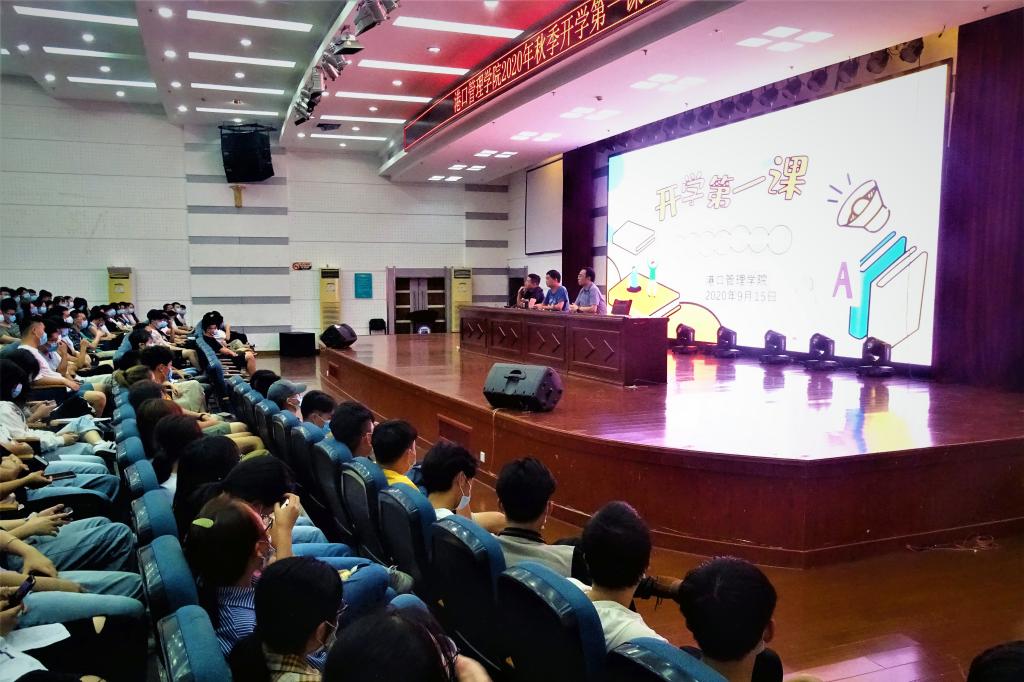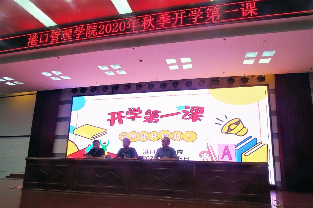 9月15日晚,港口管理学院2020年秋季开学第一课在图书馆四楼报告厅举行,港口管理学院党政班子、全体辅导员和430余名学生共同参加。