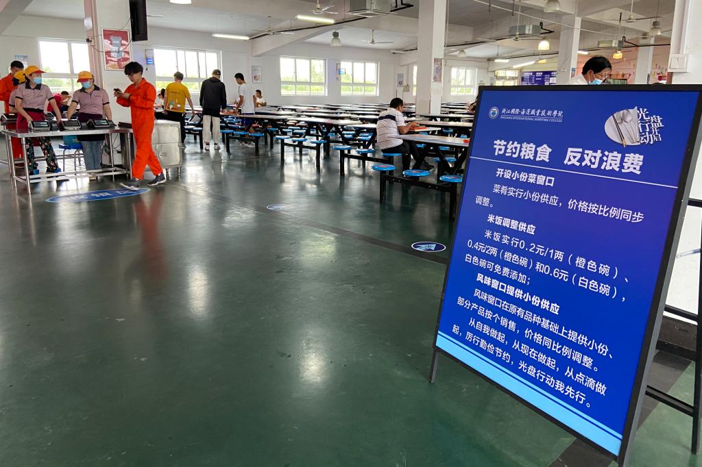 督查组现场查看了师生食堂和商贸区“节约粮食、反对浪费”相关标语标识布置、小份饭菜供应、师生就餐和剩菜剩饭等情况,向食堂负责人、食堂工作人员和学生文明就餐监督员了解了开学以来师生用餐变化情况。开学以来,后勤部门提升食堂精细化管理水平,推出了按量收费的小份菜、小份饭,浪费明显减少;“节约粮食、反对浪费”氛围比较浓厚;各职能部门和二级学院开展了宣传教育,倡导健康、节约的生活方式;绝大多数师生响应号召,做到了“光盘行动”。