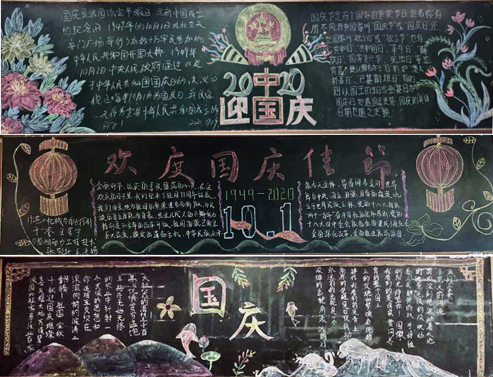 在本次活动中,各班同学利用课余时间,充分发挥各自特长,协调合作共同完成。同学们的一幅幅作品,也表达了对祖国繁荣昌盛的自豪。