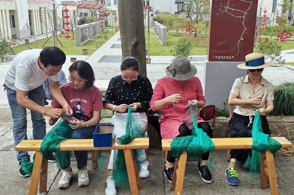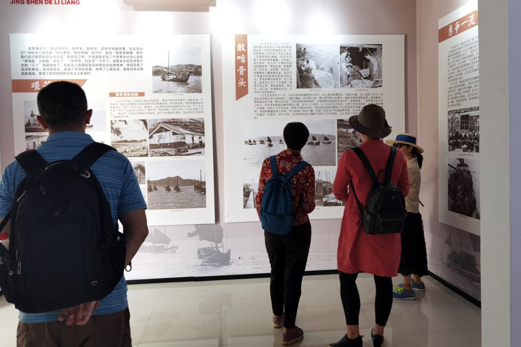 走访的第一站,社员们来到蚂蚁岛创业纪念室学习,了解蚂蚁岛人民公社的发展历史。1958年9月,蚂蚁岛建立起全国第一个渔业人民公社——蚂蚁岛人民公社。从此,蚂蚁岛以艰苦创业的精神闻名全国,是中国渔业战线的一面旗帜。2005年6月13日,习近平同志深入舟山考察海岛经济社会发展情况,登上了曾是“全国艰苦创业先进典型”的蚂蚁岛。他说,老一辈创造的“艰苦创业、敢啃骨头、勇争一流”的蚂蚁岛精神,不但没有过时,还要继续发扬光大。社员们又来到人民公社旧址,拍照留念。