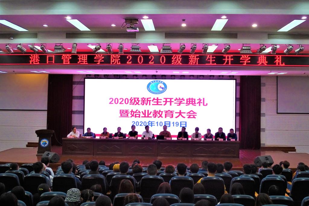 为帮助大一新生开创一个良好的开端,尽快适应大学生活,10月17日-18日,港口管理学院18个新生班级在班主任的召集下开展了第一堂主题班会课。10月19日晚上,650余名新生齐聚图书馆4楼报告厅,港口管理学院党政领导、专业团队骨干老师、辅导员、新生班主任共同为2020级学生带来开学第一课暨新生入学教育。