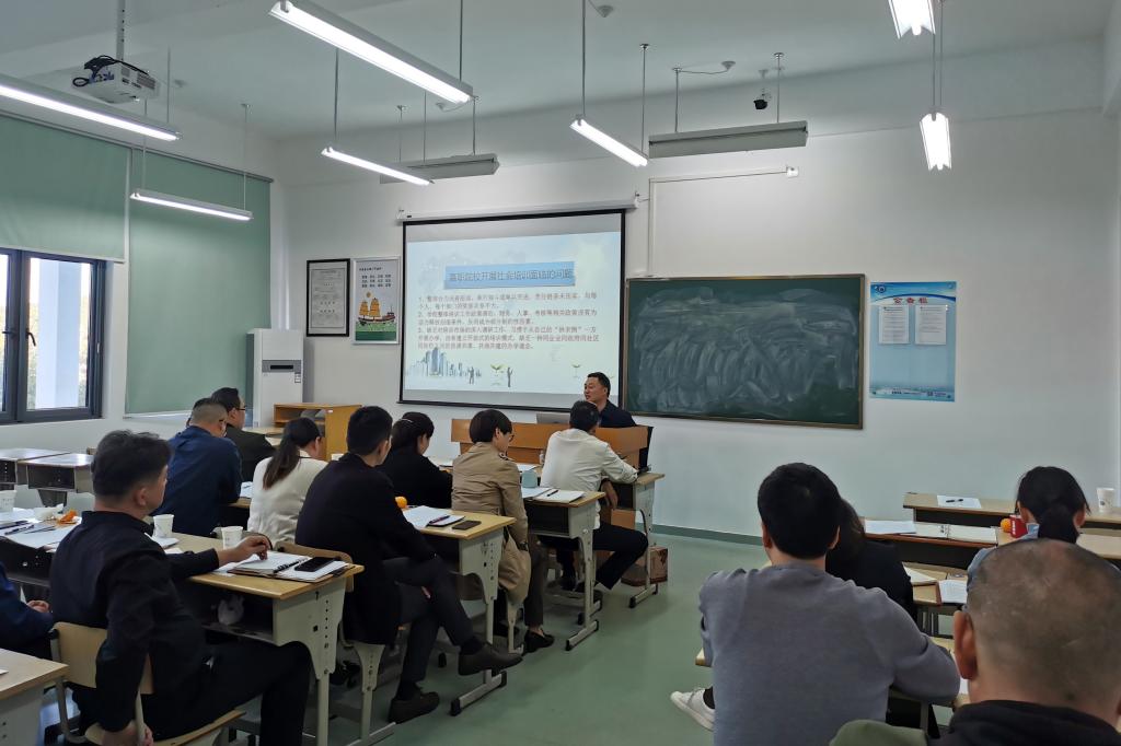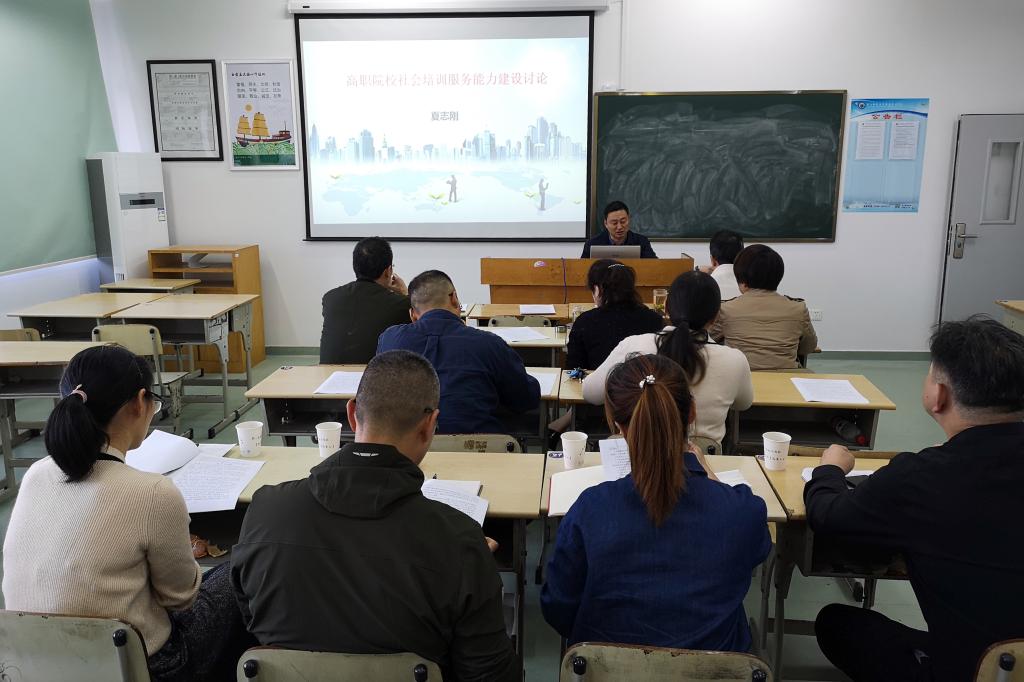 11月11日下午,东海教育学院党支部全体党员和各二级学院负责培训工作的党员干部在社会服务中心211教室,聆听了由校党委委员、副校长夏志刚以高职院校社会服务能力建设主题进行的精彩党课。