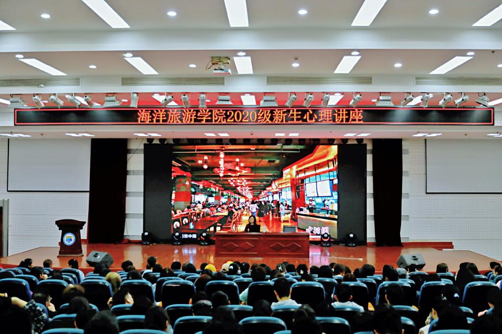为在新生中普及心理健康知识、提升学生的心理健康素养,11月13日中午,海洋旅游学院在图书馆四楼报告厅举办了以“心理发展”为主题的心理健康讲座。讲座由校心航港湾的王晶老师主讲。