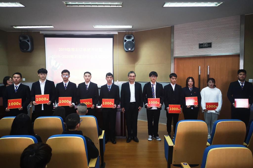 罗秀峰宣布了2019-2020学年常石奖助学金获得者名单。佐藤二郎亲自为获奖同学颁发奖助学金。随后,2019级船舶工程技术2班傅锦枫同学代表常石班学生发言,对常石集团对同学们的支持和帮助表示衷心的感谢。