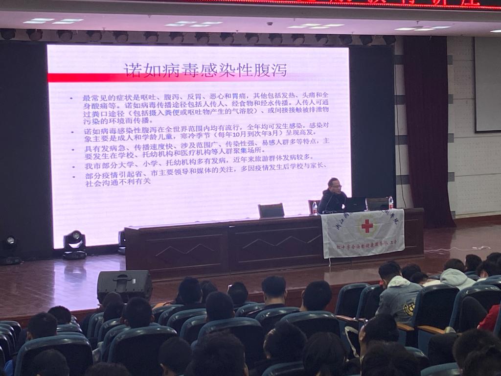 目前是诺如病毒的高发季节,学校更是诺如病毒防控的重点场所,吴医生针对诺如病毒的发病、传播途径、预防方法和措施等进行了认真讲解。他强调,诺如病毒具有传播速度快、传播力强的特点,同学们要引起重视,做好防控措施。