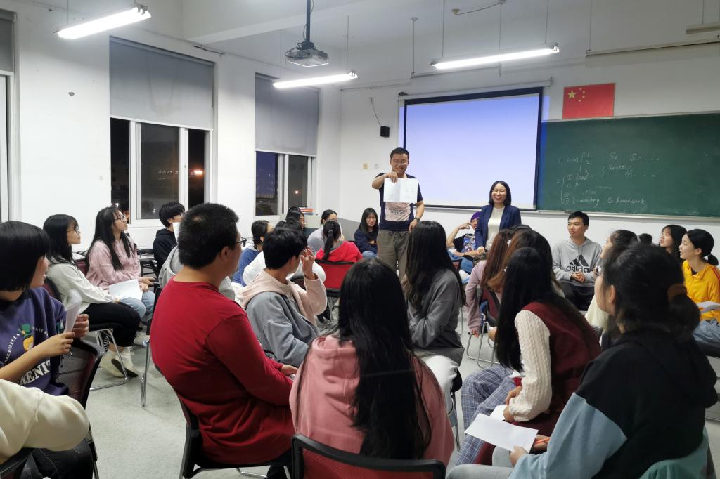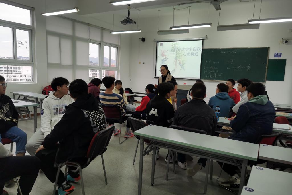 三位老师以案例、视频、游戏、画图、分组讨论等形式从心理健康的定义、大学生心理健康的现状、缓解心理压力的方法和如何适应大学生活等方面进行了讲解,师生互动效果良好。
